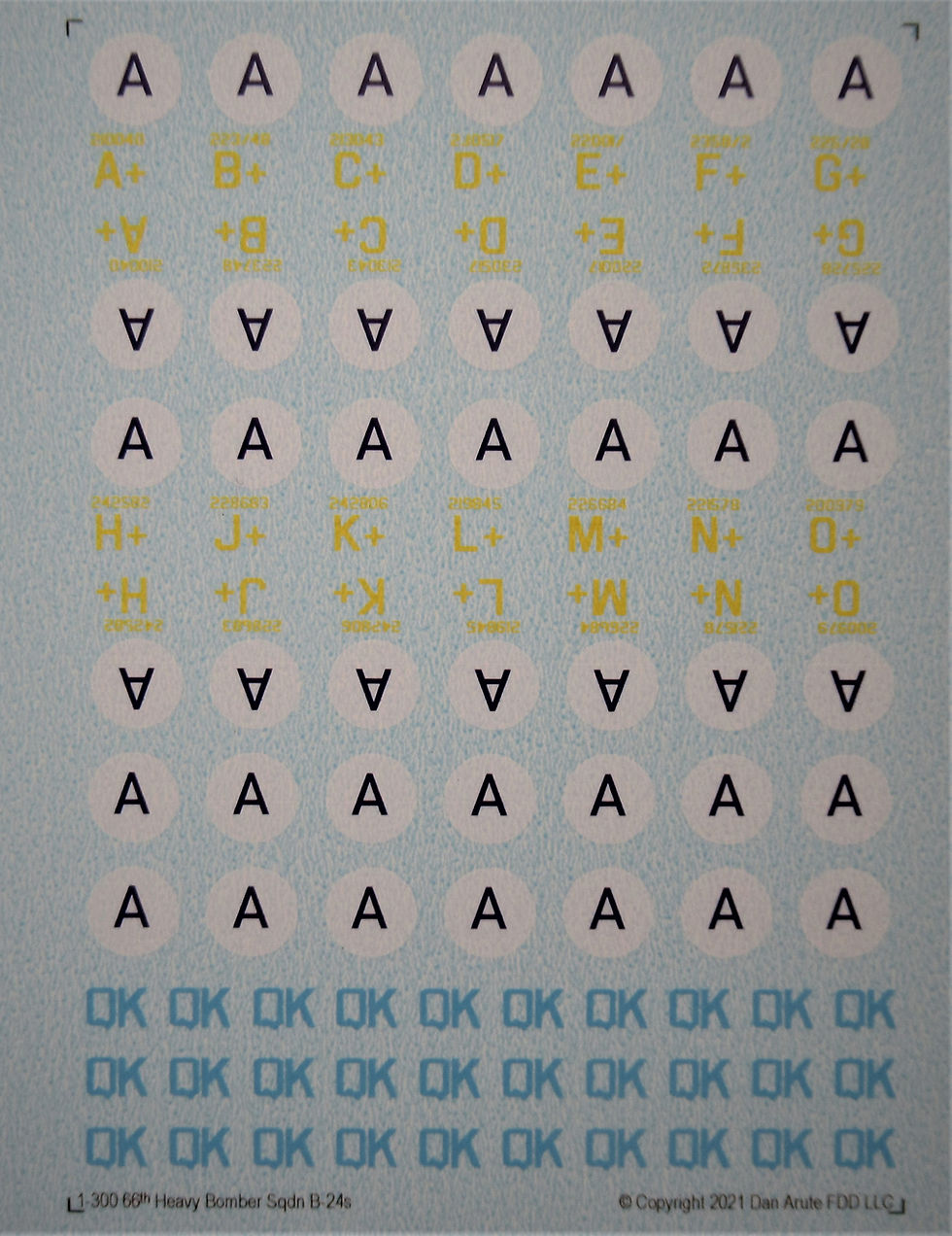 1-300 B-24 decals for 66th Heavy Bomber SQN early war